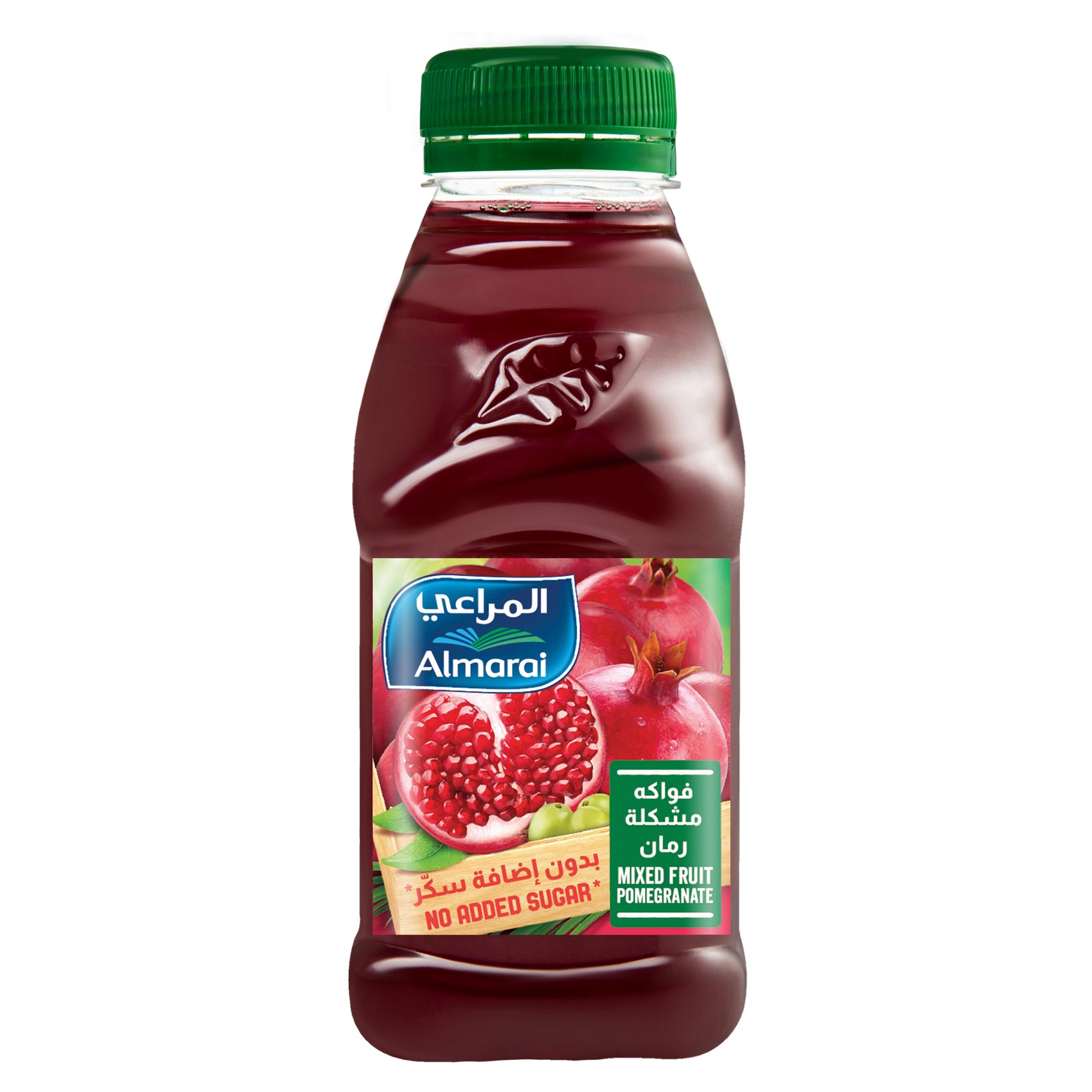 Almarai No Added Sugar Pomegranate Mixed Fruit Juice is a refreshing and healthy drink option. It is made with a blend of mixed fruit juices, giving it a tangy and sweet flavour. The best part is that it contains no added sugar, making it a guilt-free choice. This 200ml bottle is perfect for on-the-go consumption, whether you're at work, school, or out and about. Enjoy the delicious taste and benefits of pomegranate and mixed fruit juices without worrying about added sugars. Pomegranate mixed fruit juice from Almarai is a harmonious blend of pomegranate and mixed fruits, 100% natural without added sugar, to get a refreshing juice.