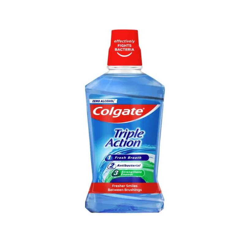 Get super fresh breath with Colgate Triple Action Mouthwash. This fresh breath mouthwash works in three amazing ways to freshen your breath and look after your teeth. It fights bad breath and is also an antibacterial mouthwash that effectively fights bacteria. What's more, this fresh breath mouthwash strengthens enamel and contains fluoride, which is essential to help fight cavities. Try Colgate Triple Action Mouthwash today to get ready to take on the world one smile at a time. Colgate Triple Action Mouthwash is a fresh breath mouthwash that looks after your smile in 3 ways. It freshens breath, effectively removes bacteria, strengthens enamel, and helps to prevent cavities.