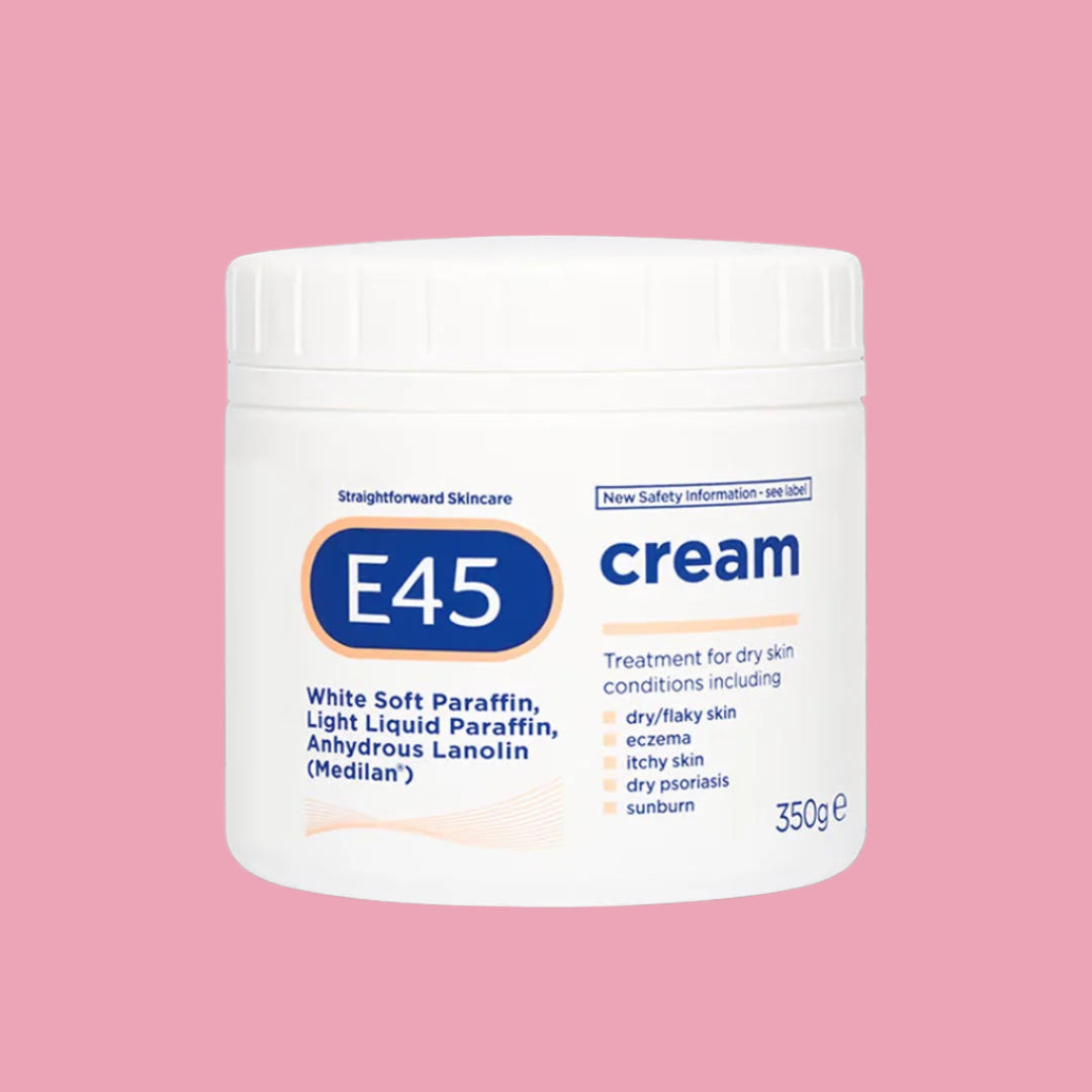 E45 Cream is an emollient cream that moisturises and relieves dry skin conditions, including eczema.