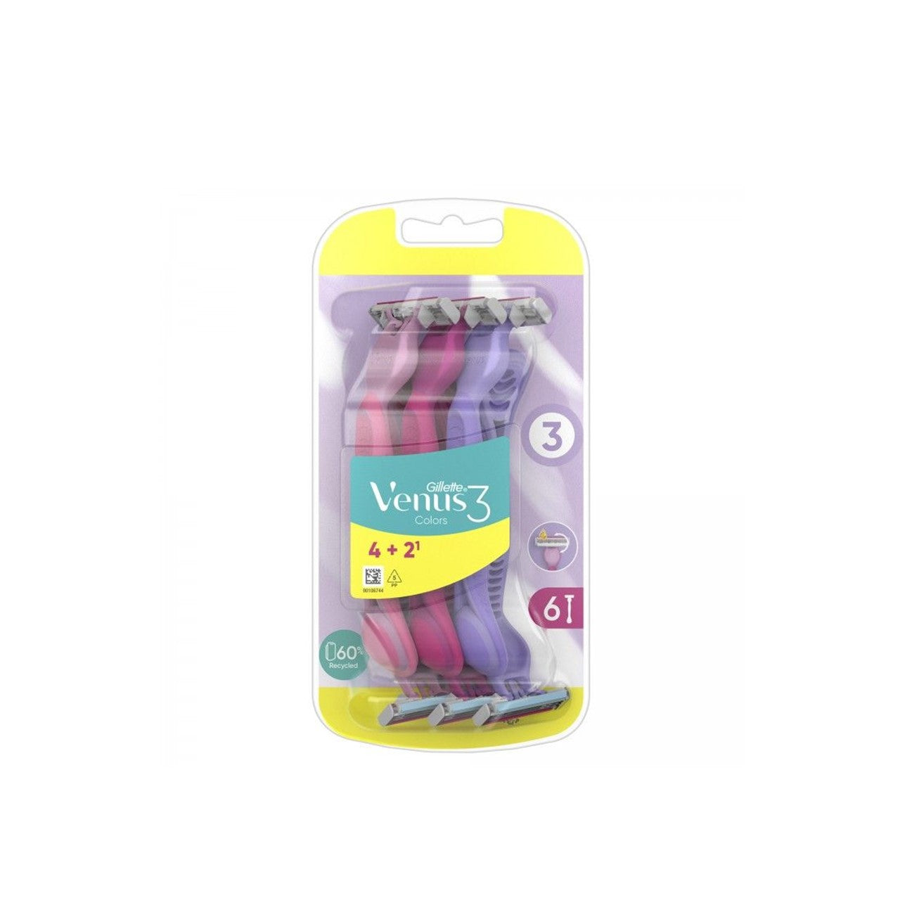 Gillette - VENUS - 3 Colors - 3 Blades Disposable Razors for Women - 6 Piece Pack