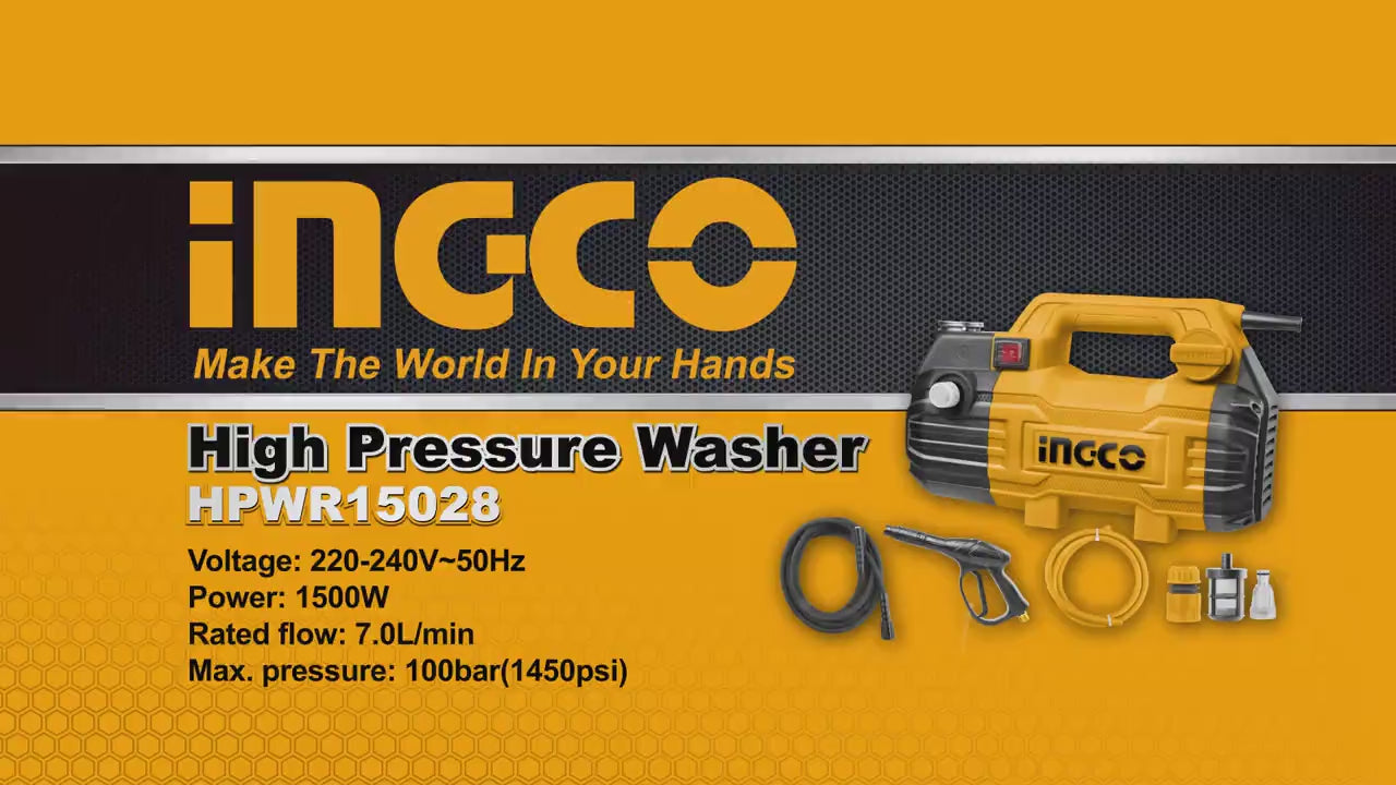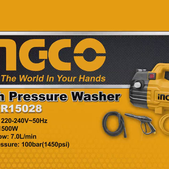 INGCO - 100 Bar (1450 PSI) - 1500 Watt - Induction Motor High Pressure Washer With Accessories (HPWR15028)