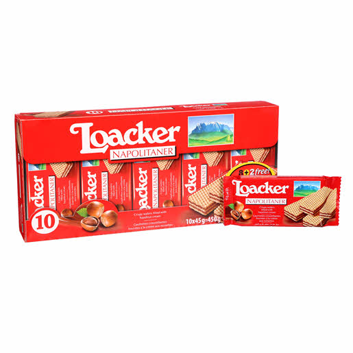 Loacker Wafers Napolitaner is a crispy wafers filled with hazelnut cream All the goodness of Loacker in a handy pack that goes wherever you go. For a quick snack no matter where you are, at any time of the day. In each pack, 8 crispy wafers to munch at work, at the gym, in your free time: a pleasure that's always at hand!