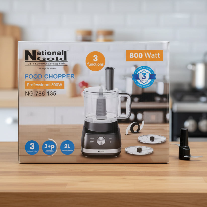 Expertly chop, mix, and blend your favorite ingredients with the National Gold (NG) Food Chopper. Designed with a powerful 800W motor and a spacious 2L capacity, this black chopper effortlessly handles all your food prep needs. Combine that with the reliable NG786-135 model and experience superior performance in the kitchen.