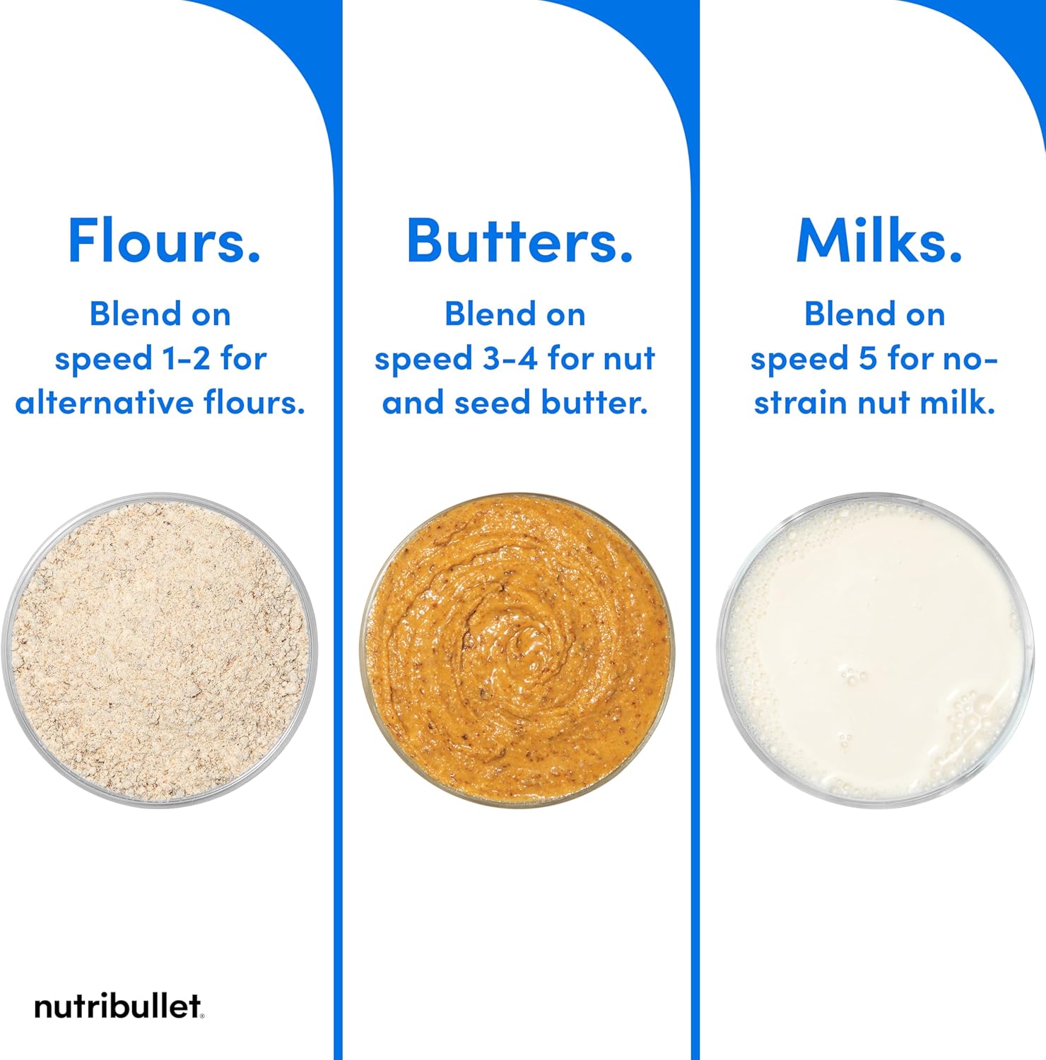 - Precision speeds. A dynamic speed range of 1-5 offers the precision to blend everything from delicate nut flours to fully-emulsified nut milk – no straining required.
