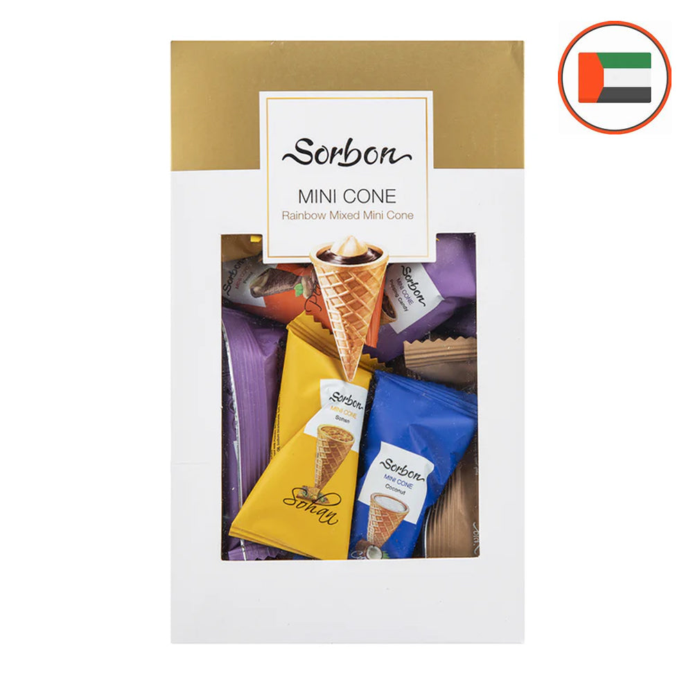 Sorbon Mix Mini Cone Chocolate box features assorted flavors ranging from dark chocolate to coffee. Its classic taste offers you the reason to celebrate every small and big occasion of happiness.