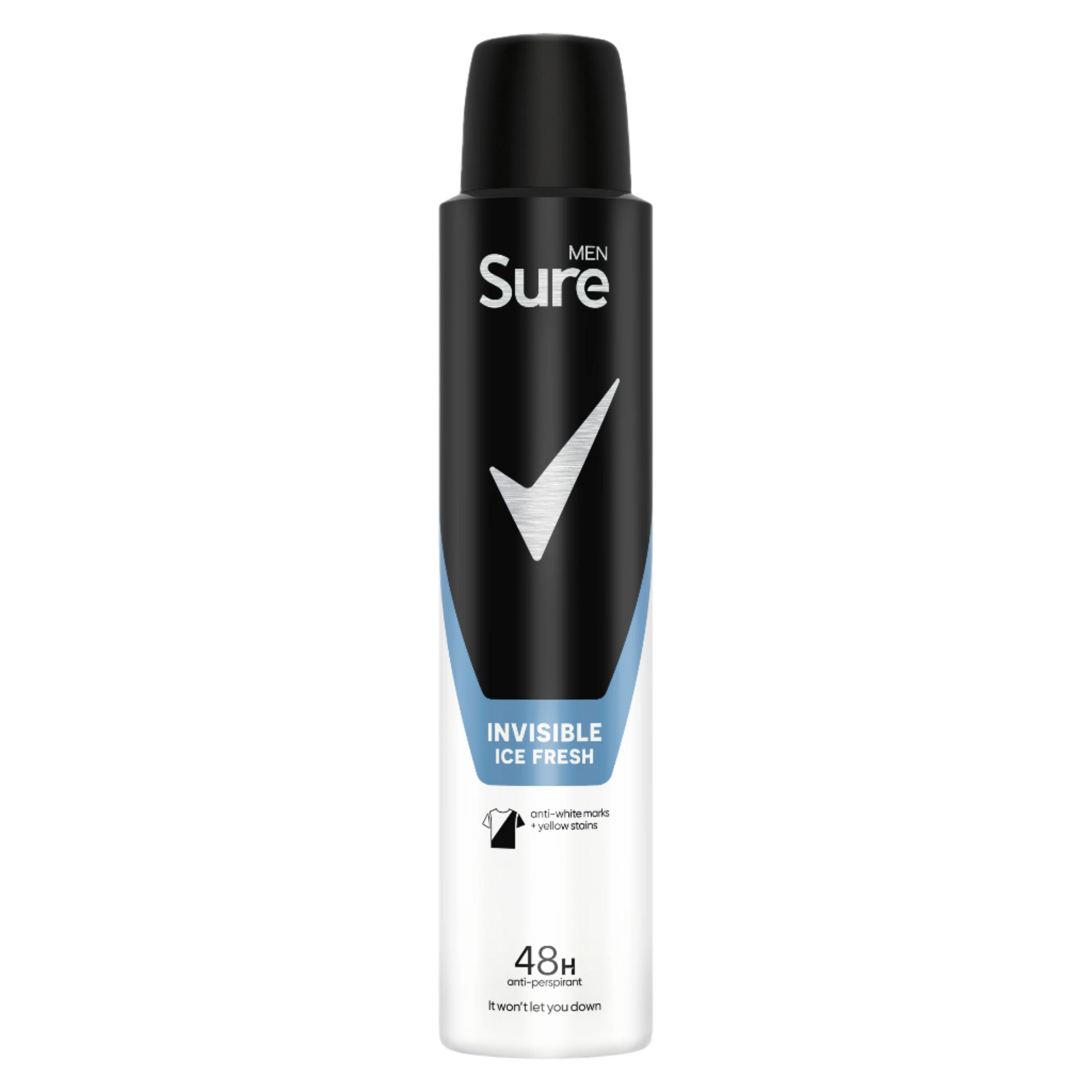 Sure Men Invisible Ice Fresh Anti-Perspirant Deodorant Aerosol is formulated to provide 48-hour protection against sweat, odour, and marks on your clothes, keeping black clothes black and white clothes white for longer. Its anti-white mark and yellow stain formula is dermatologically tested and alcohol free*, so you can feel fresh, dry, and protected all day long without worrying about irritation. This anti-perspirant deodorant for men contains Sure’s innovative MotionSense technology, which releases bursts of fresh and clean fragrance with a citrus kick when you need it most. It works like this: unique microcapsules sit on the surface of your skin. When you move, friction breaks those microcapsules, releasing more fragrance. So, the more you move, the more it protects.