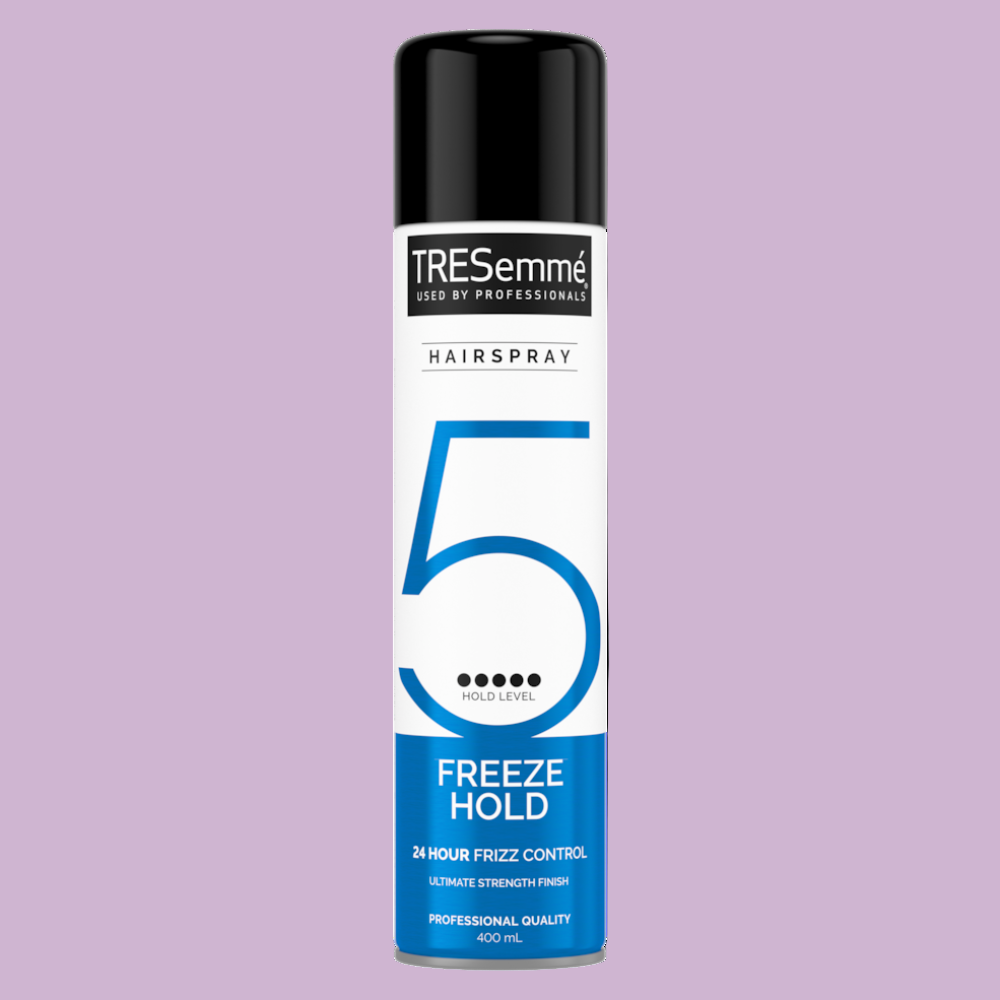 TRESemmé Freeze Hold Hairspray- a fast-drying, humidity-resistant hair spray- fully secures your look and is never sticky or tacky to the touch.